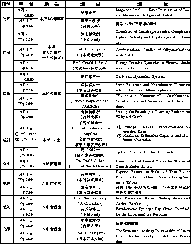 經濟研究所所長許嘉棟先生,於八十三年九月二十六日至三十日