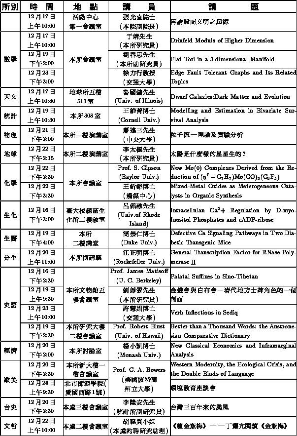 歷史語言研究所研究員朱鴻林先生於八十三年十二月十二日至十