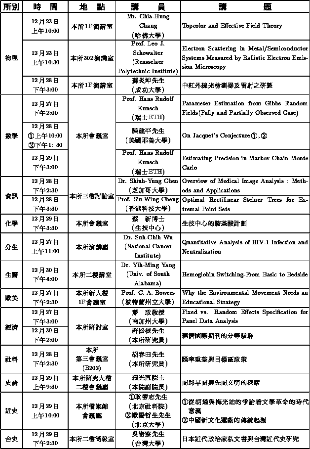 中國文哲研究所籌備處定十二月二十七日上午9:30∼12:00,舉
