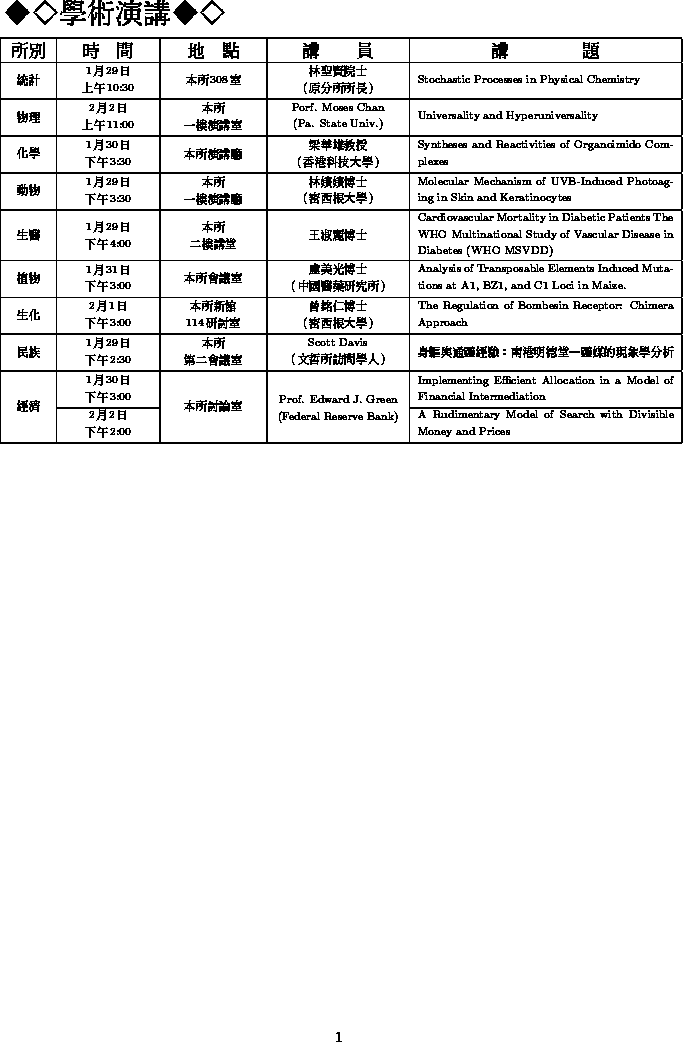 韓國漢城國立大學教授Sehie Park,應數學研究所之邀於元月廿