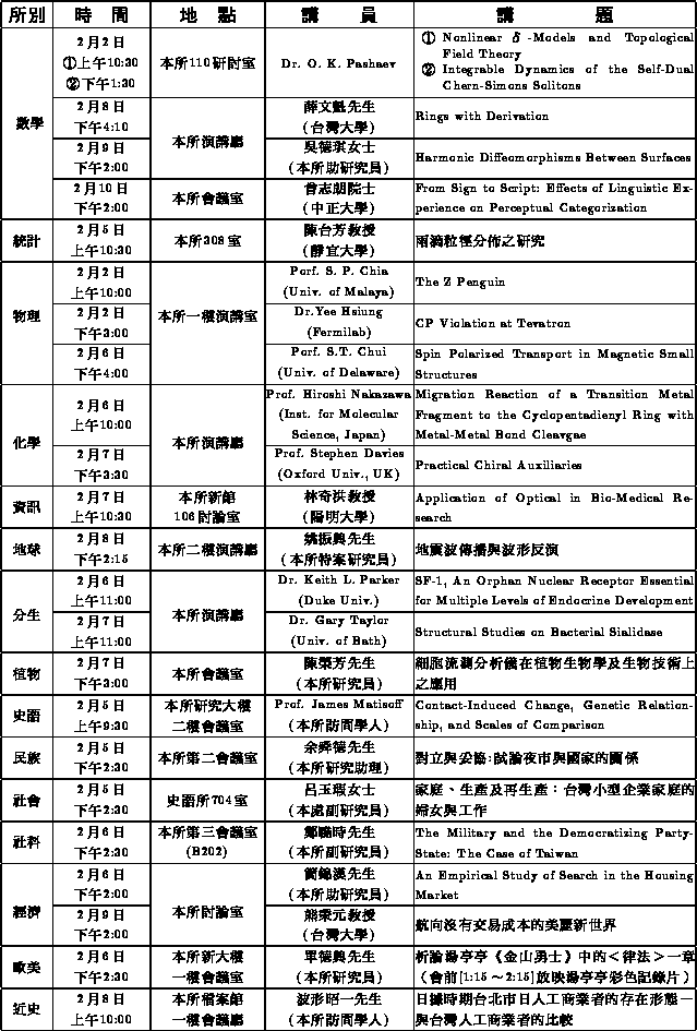 凡有意者請將履歷、自傳於二月十日前寄至台北市南港研究院路