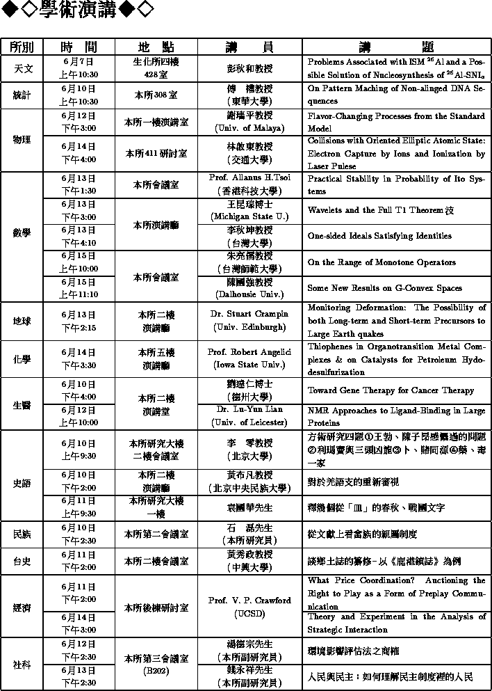 六月十九日(週三)中午12:00至下午2:00,假分生所一樓演講廳舉