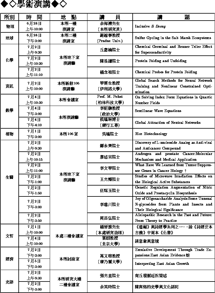 中,除七月一日、二日各所學術諮詢委員會及學術諮詢總會會議在