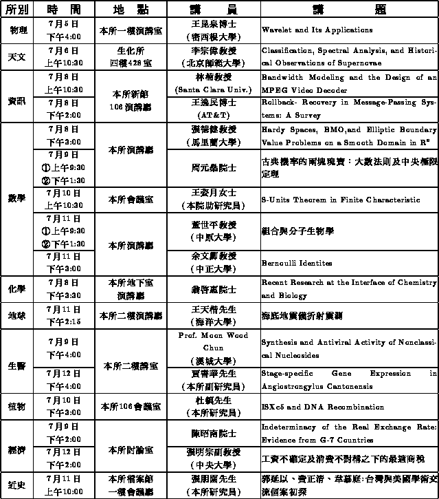 數學研究所於七月十日、十一日(星期三、四)兩天,在該所三
