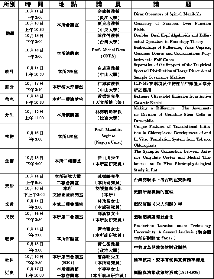 ¸ê°T¬ì¾Ç¬ã¨s©Ò©Òªø§õµY¤s¡A©ó¤Q¤ë¤Q¤¤é°_¦Ü¤Q¤ë¤Q¤K¤é¤î¡A