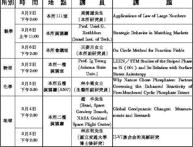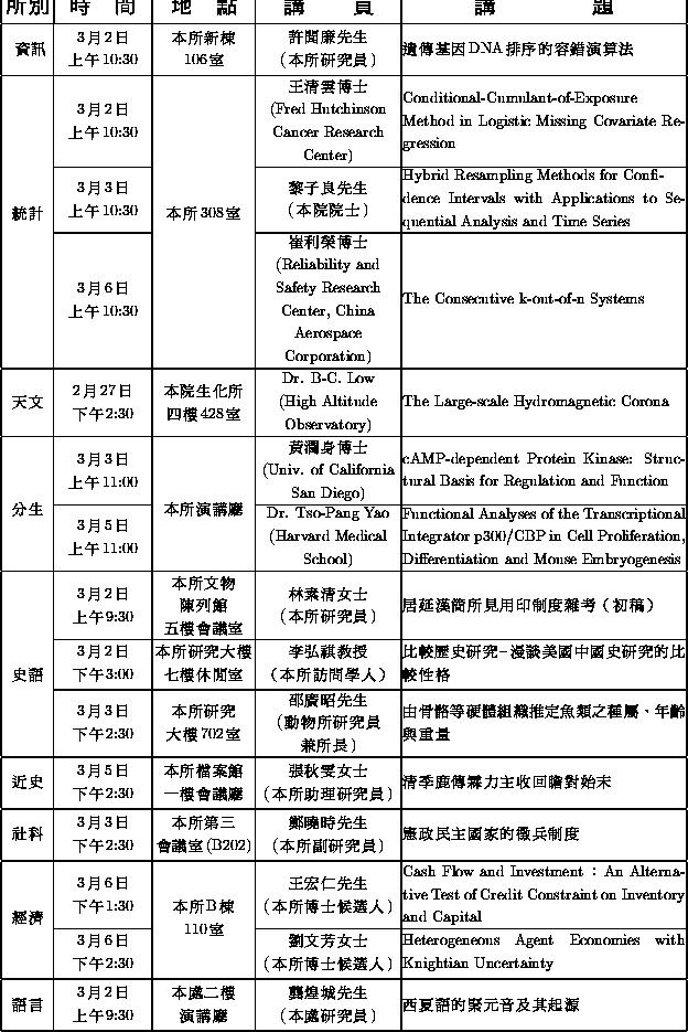 專題演講。該系列學術活動將於三月四日上午十至十二時在該所研